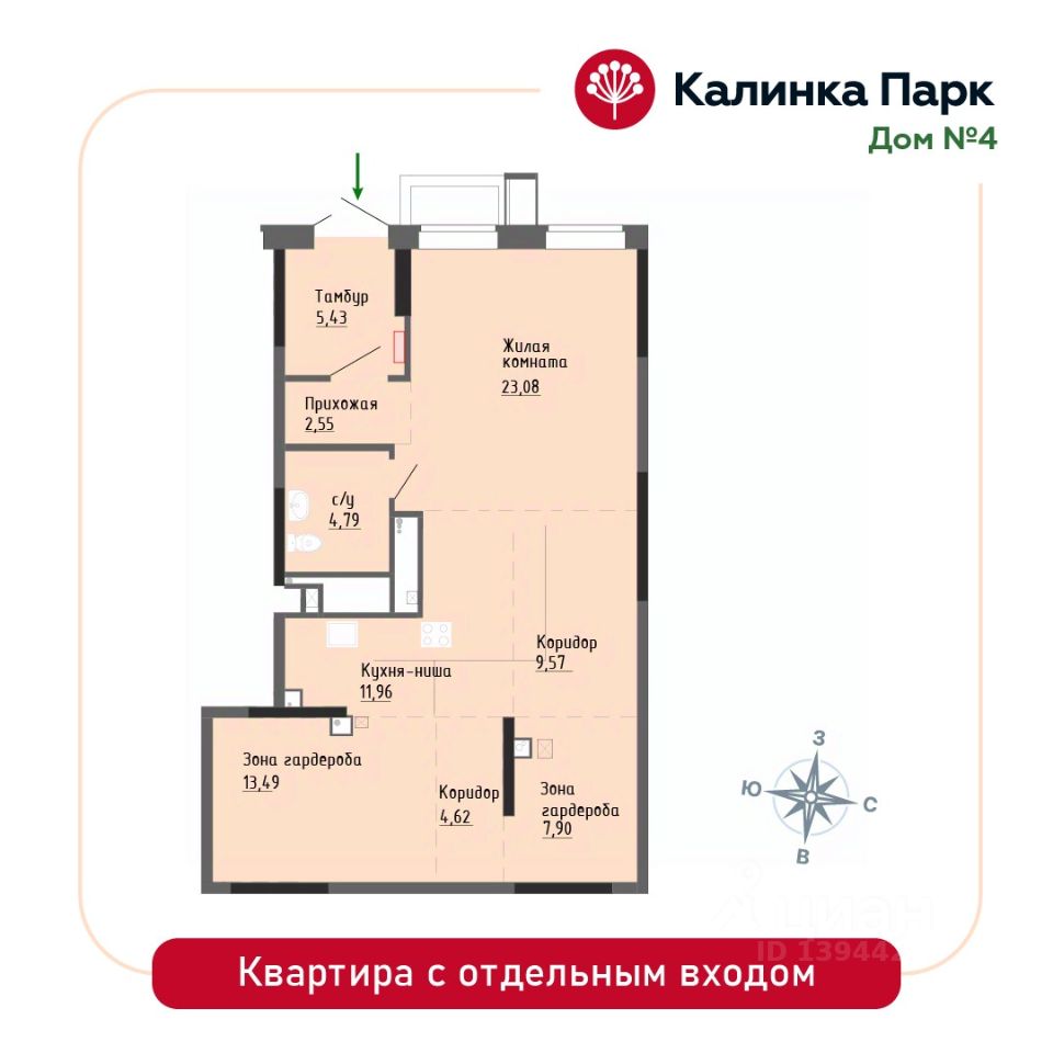 Продается квартира-студия в новом доме 4 микрорайона "Калинка Парк".