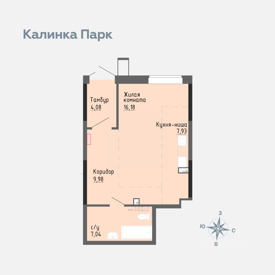 Продается квартира-студия в новом доме 4 микрорайона "Калинка Парк".