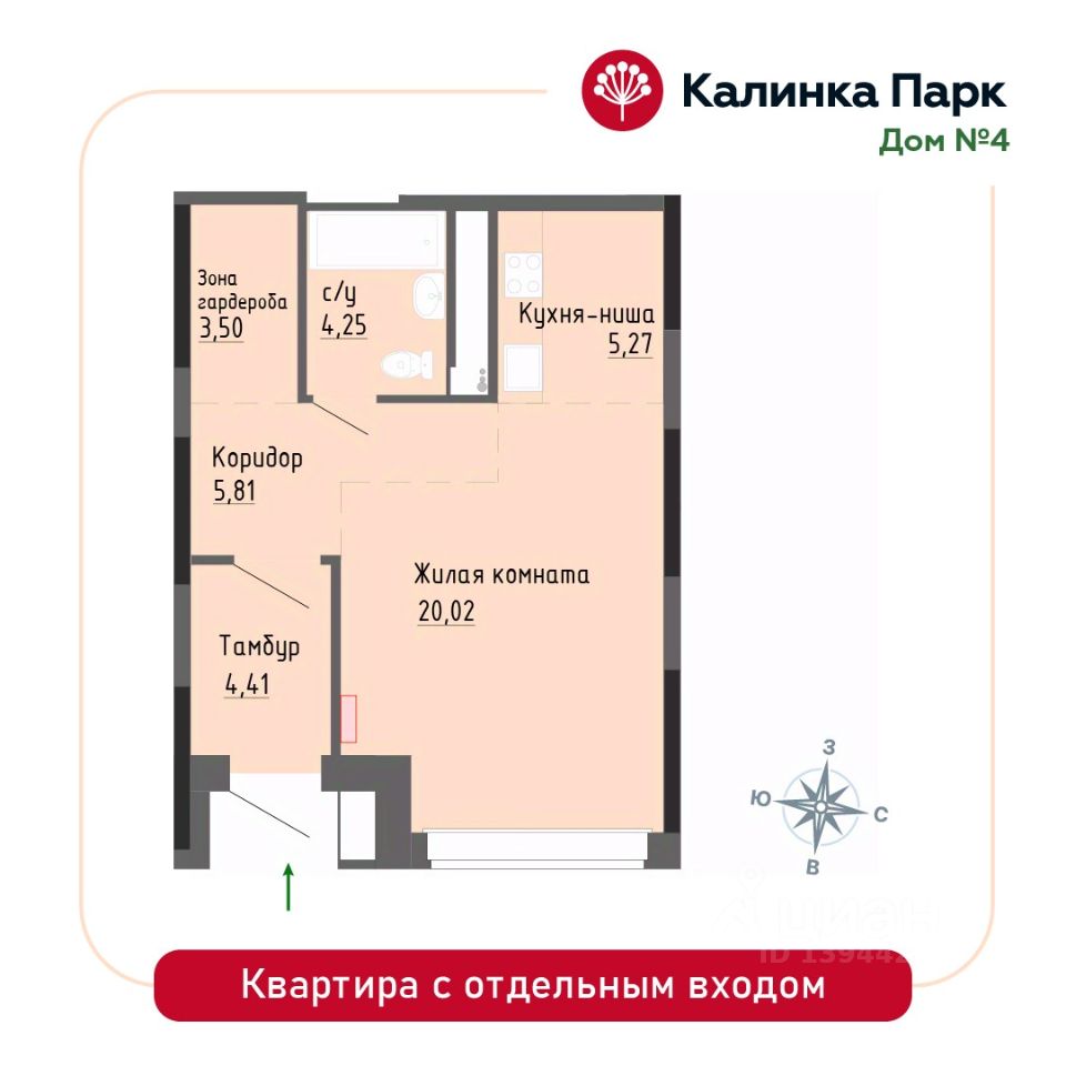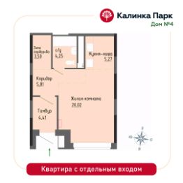 Продается квартира-студия в новом доме 4 микрорайона "Калинка Парк".