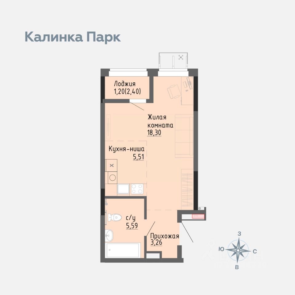 Продается квартира-студия в новом доме 4 микрорайона "Калинка Парк".