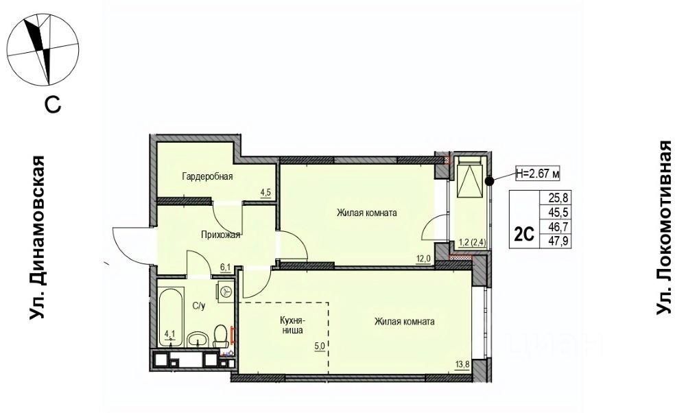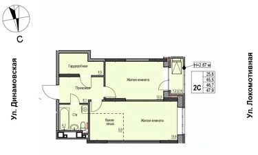 Продаётся 3-комнатная квартира в строящемся доме (Дом 1), срок сдачи: II-кв. 2027, общей площадью 47.2 кв.м., на 1 этаже. ЖК "Локомотив" - это жилой комплекс, состоящий из трех домов, объединенных стилобатом. Удобное расположение, 15 минут до центра.