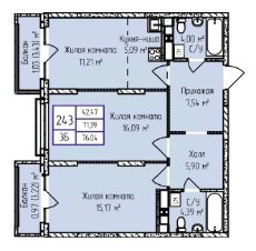 Продаётся 3-комнатная квартира в строящемся доме (Корпус 1), срок сдачи: IV-кв. 2025, общей площадью 76.04 кв.м., на 17 этаже. Новый жилой комплекс "Мюнхен" от застройщика "СЗ Аир-Строй" расположен по адресу: Россия, Удмуртская Республика, Ижевск, улица Героя России Ильфата Закирова
