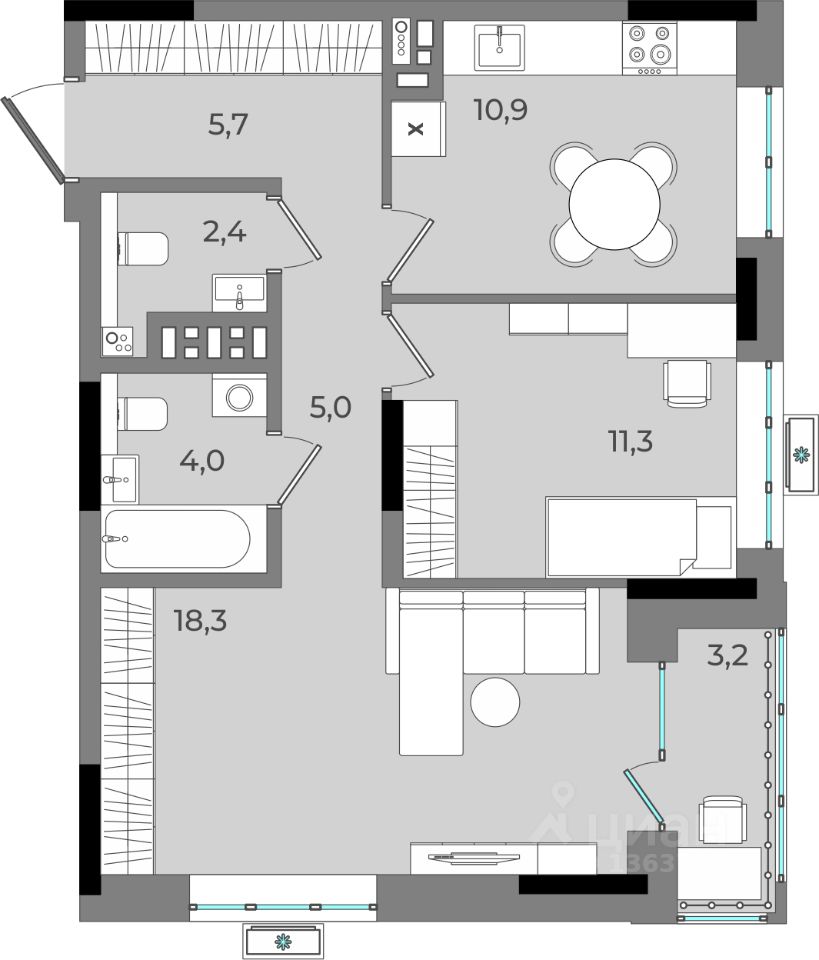 1 лоджия