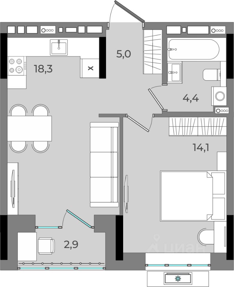 18,3 м²