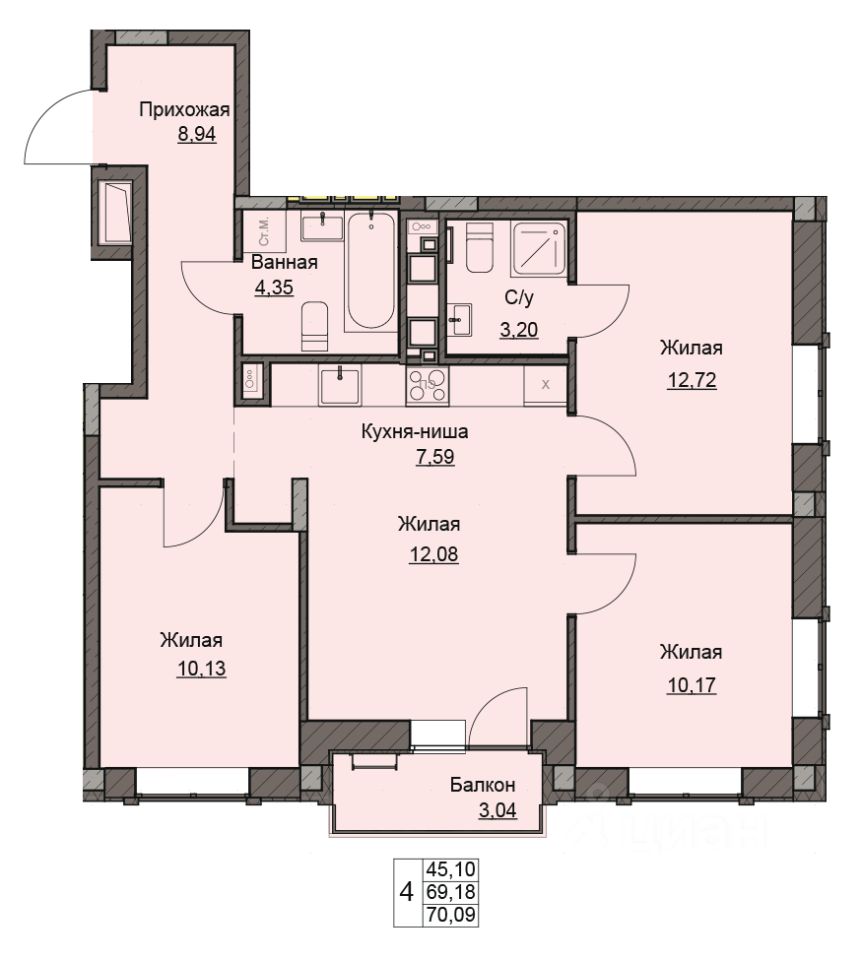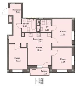 Продаётся 3-комнатная квартира в строящемся доме (Дом 1), срок сдачи: IV-кв. 2025, общей площадью 70.09 кв.м., на 15 этаже. Новый жилой дом от застройщика "Название застройщика" расположен по адресу ______________________