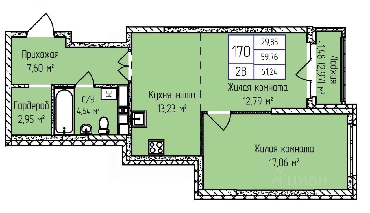 Продаётся 2-комнатная квартира в строящемся доме (Корпус 1), срок сдачи: IV-кв. 2025, общей площадью 61.24 кв.м., на 12 этаже. Новый жилой комплекс "Мюнхен" от застройщика "СЗ Аир-Строй" расположен по адресу: Россия, Удмуртская Республика, Ижевск, улица Героя России Ильфата Закирова