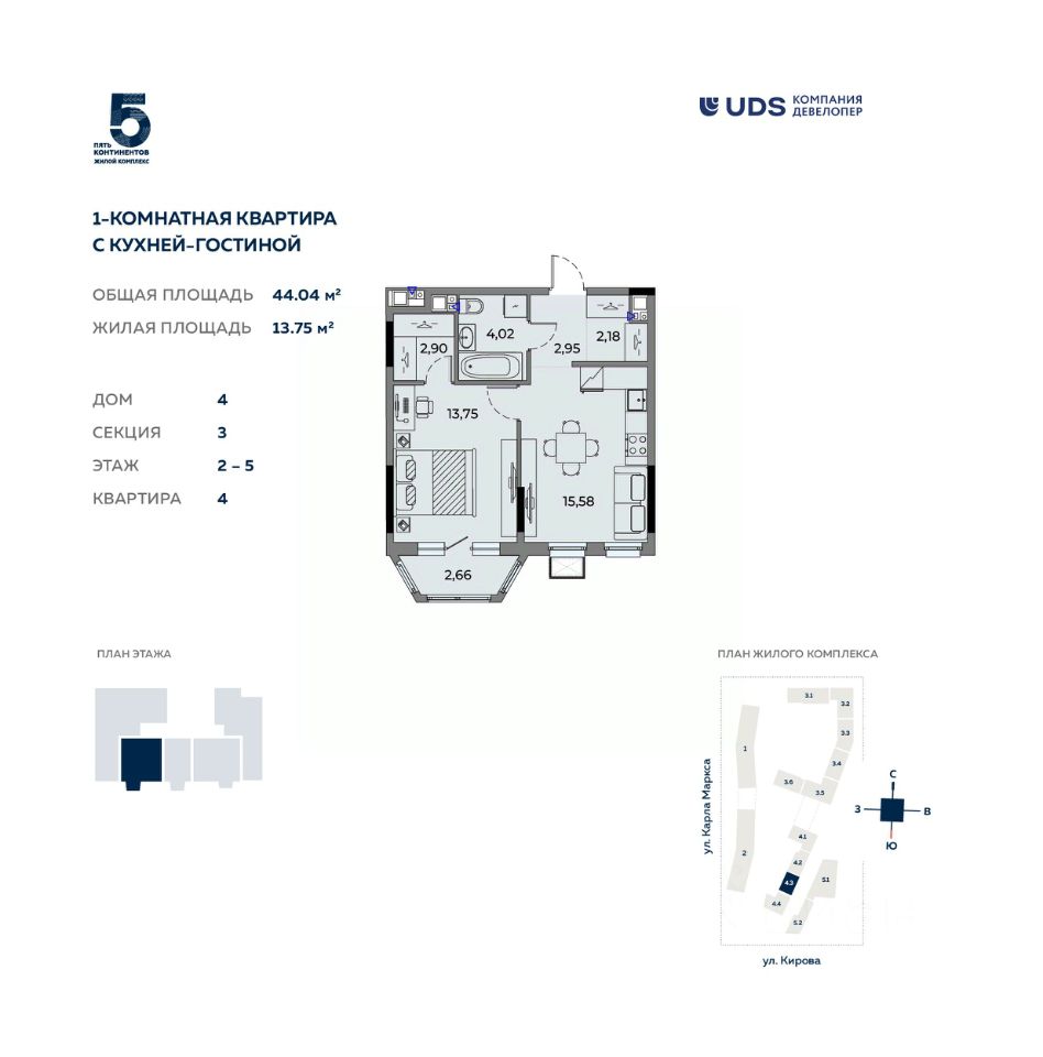 Ездить на автомобиле ежедневно или добираться пешком жителям "Пяти континентах" удобно одинаково. В комплексе есть подземный паркинг, и, в целом, он выгодно расположен на пересечении улиц Кирова и Карла Маркса, рядом с остановкой "Магазин "Океан". В 15 минутах хотьбы - Центральная площадь и набережная.