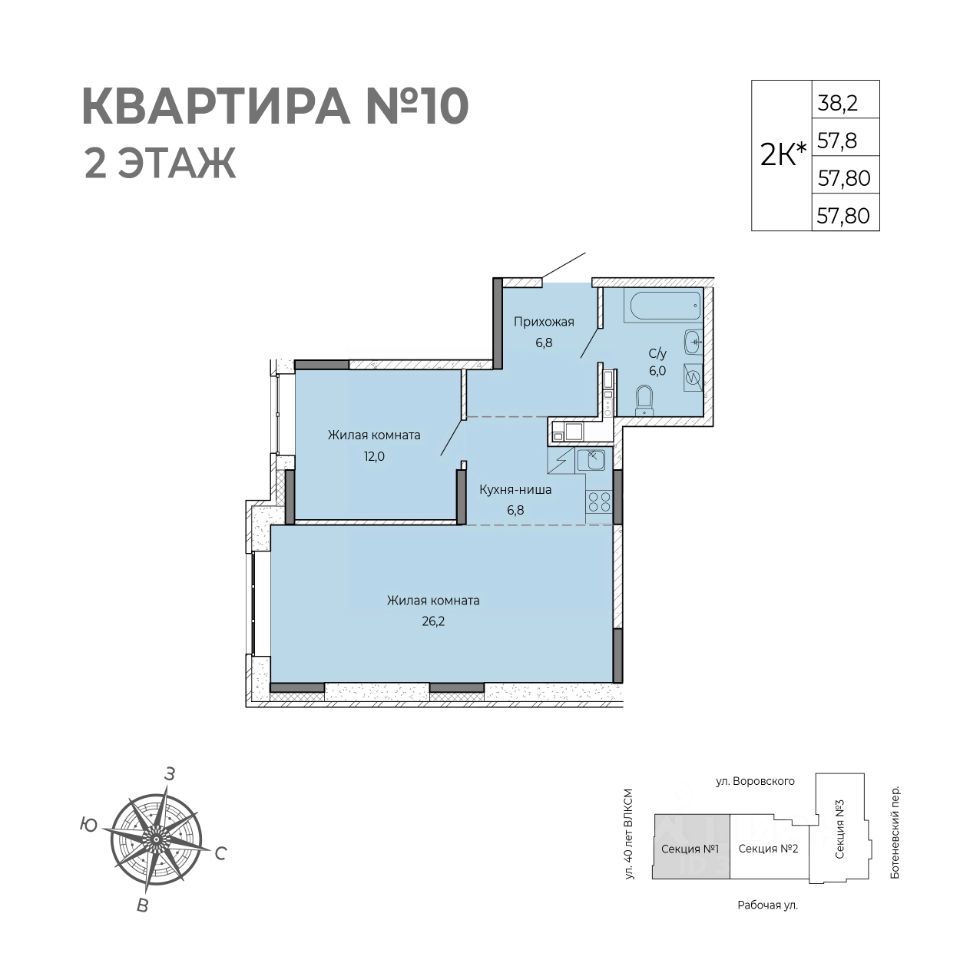 Общая площадь57,8 м²
