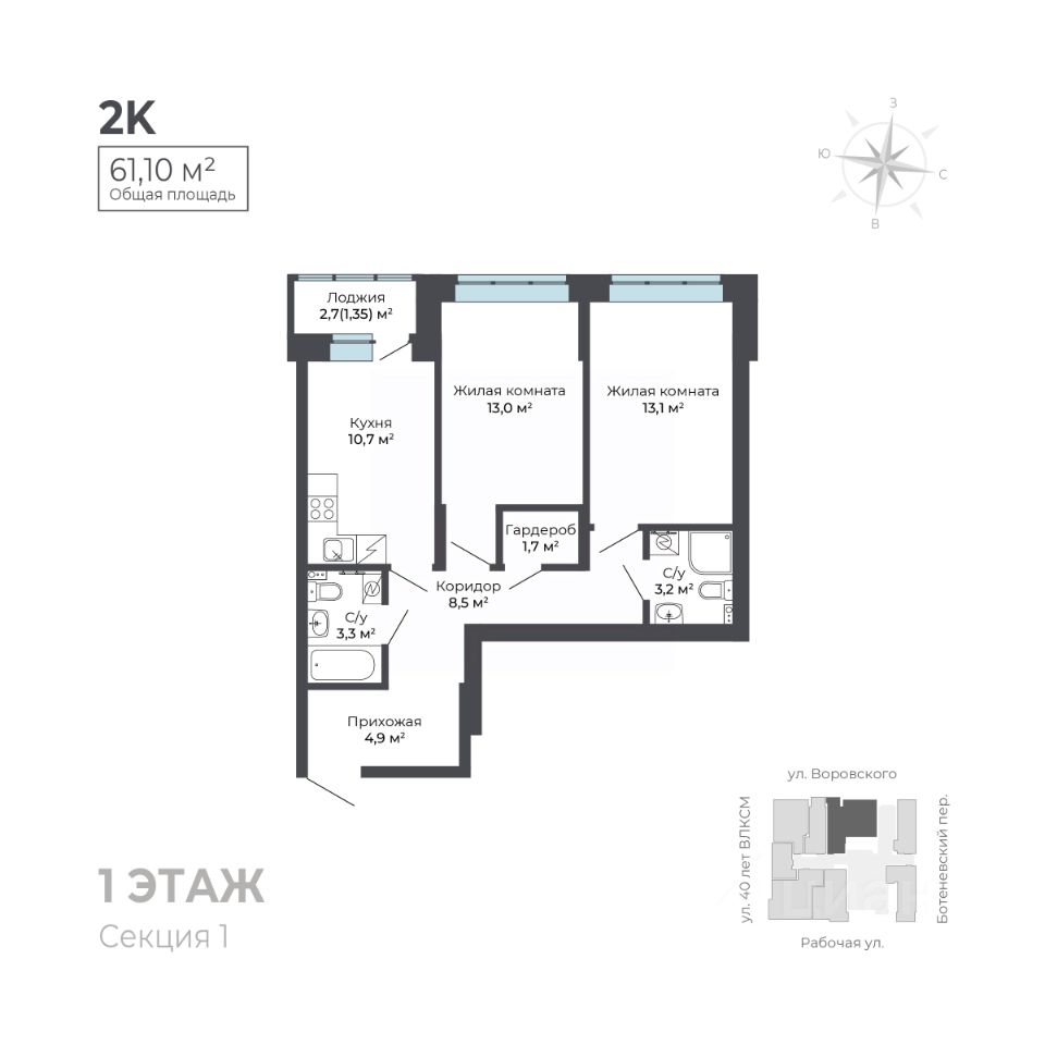На первом этаже расположена торговая галерея. Дом оснащен автономной системой отопления и видеонаблюдением для вашей безопасности. Для удобства жителей предусмотрены наземный паркинг и большая городская парковка, а также индивидуальные кладовые помещения.