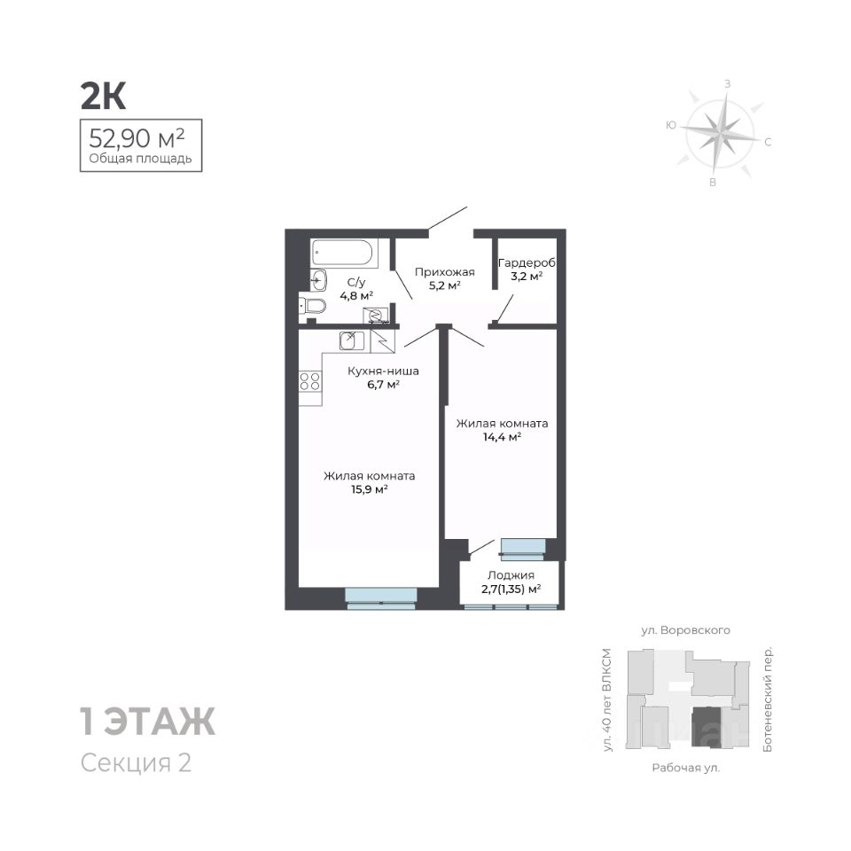 Общая площадь52,9 м²
