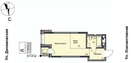 Продаётся 1-комнатная квартира в строящемся доме (Дом 1), срок сдачи: II-кв. 2027, общей площадью 26.5 кв.м., на 17 этаже. ЖК "Локомотив" - это жилой комплекс, состоящий из трех домов, объединенных стилобатом. Удобное расположение, 15 минут до центра.