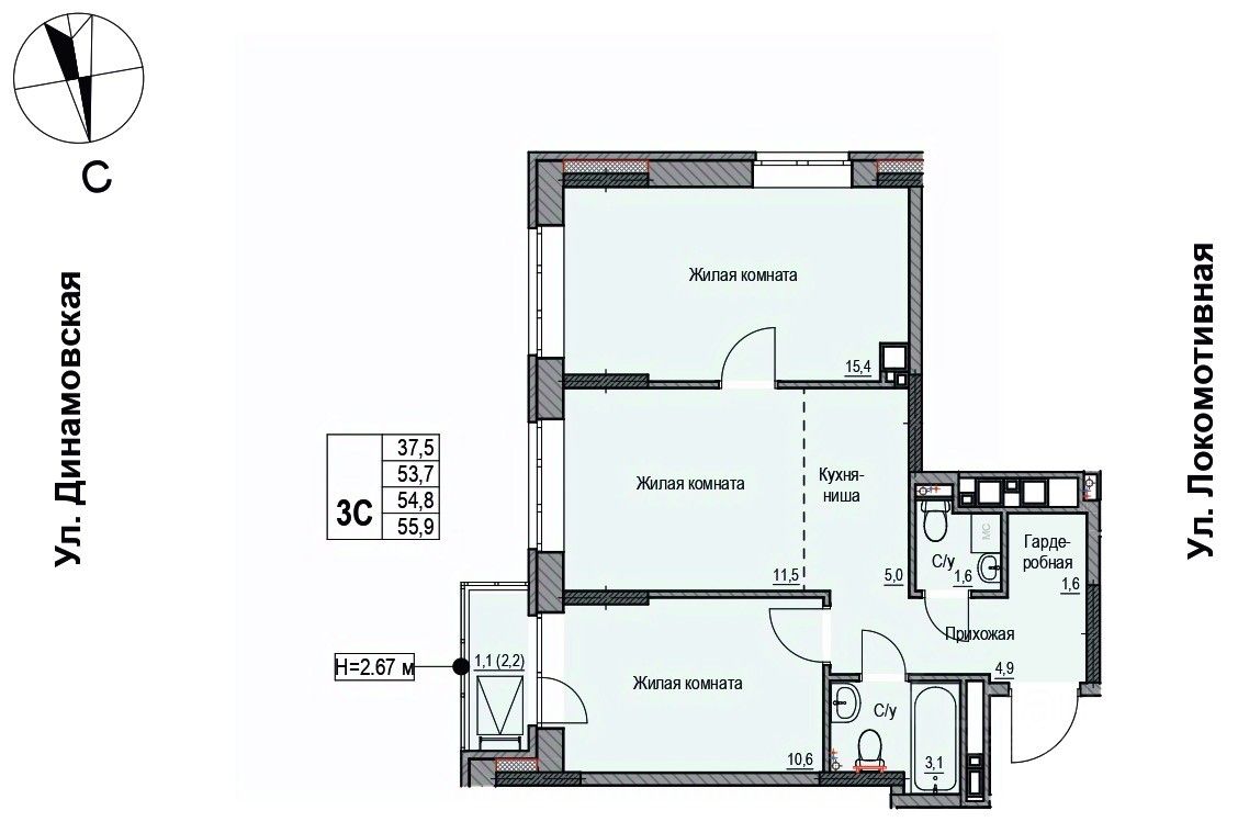 Продаётся 3-комнатная квартира в строящемся доме (Дом 1), срок сдачи: II-кв. 2027, общей площадью 54.6 кв.м., на 17 этаже. ЖК "Локомотив" - это жилой комплекс, состоящий из трех домов, объединенных стилобатом. Удобное расположение, 15 минут до центра.
