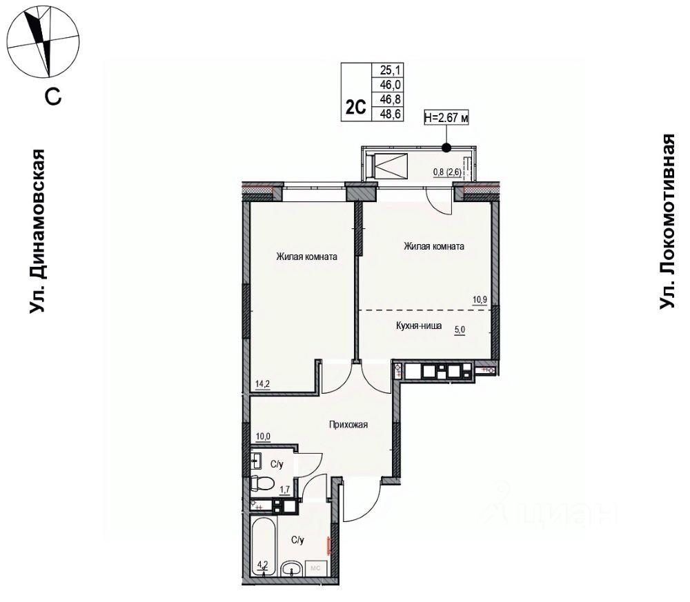 Продаётся 2-комнатная квартира в строящемся доме (Дом 1), срок сдачи: II-кв. 2027, общей площадью 46.8 кв.м., на 17 этаже. ЖК "Локомотив" - это жилой комплекс, состоящий из трех домов, объединенных стилобатом. Удобное расположение, 15 минут до центра.