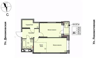 Продаётся 2-комнатная квартира в строящемся доме (Дом 1), срок сдачи: II-кв. 2027, общей площадью 46.7 кв.м., на 17 этаже. ЖК "Локомотив" - это жилой комплекс, состоящий из трех домов, объединенных стилобатом. Удобное расположение, 15 минут до центра.