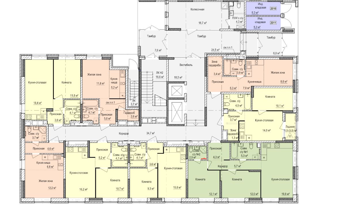 Предусмотрена периметральная поквартирная разводка труб отопления в конструкции пола. Устанавливаем стильные стальные панельные радиаторы с нижней подводкой.
