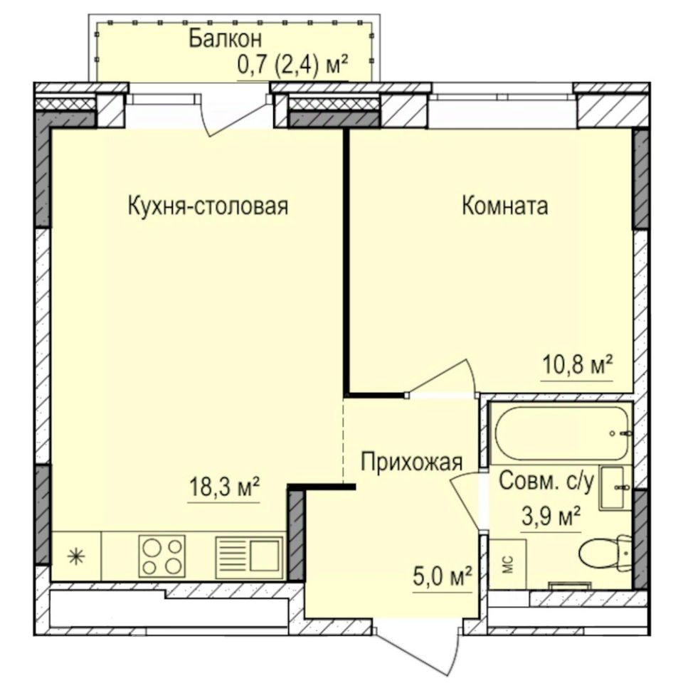 Продаётся 1-комнатная квартира в строящемся доме (Дом 7), срок сдачи: III-кв. 2028, общей площадью 38.6 кв.м., на 8 этаже. Квартира от застройщика КОМОССТРОЙ. Покупка защищена ФЗ 214 с использованием эскроу счетов.