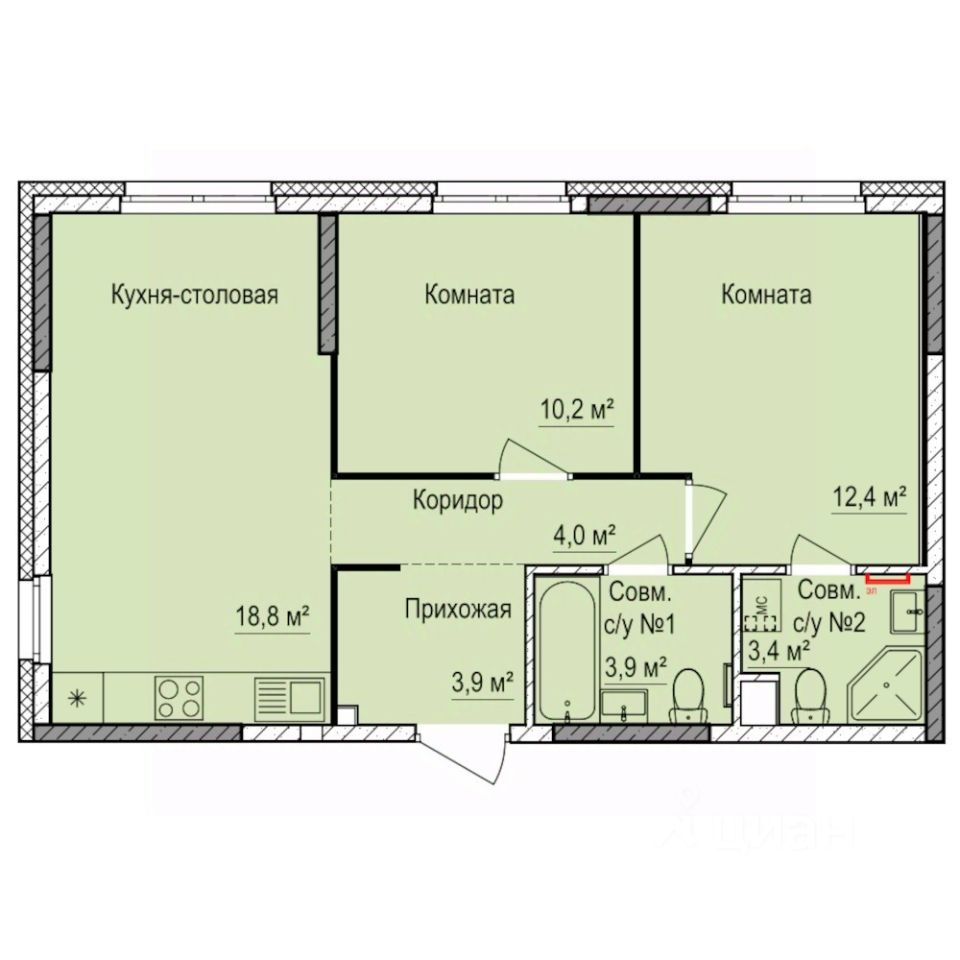 Продаётся 2-комнатная квартира в строящемся доме (Дом 7), срок сдачи: III-кв. 2028, общей площадью 56.6 кв.м., на 2 этаже. Квартира от застройщика КОМОССТРОЙ. Покупка защищена ФЗ 214 с использованием эскроу счетов.