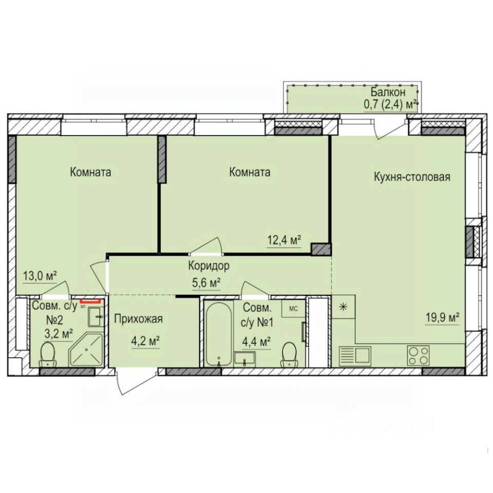 Продаётся 2-комнатная квартира в строящемся доме (Дом 7), срок сдачи: III-кв. 2028, общей площадью 63.4 кв.м., на 4 этаже. Квартира от застройщика КОМОССТРОЙ. Покупка защищена ФЗ 214 с использованием эскроу счетов.