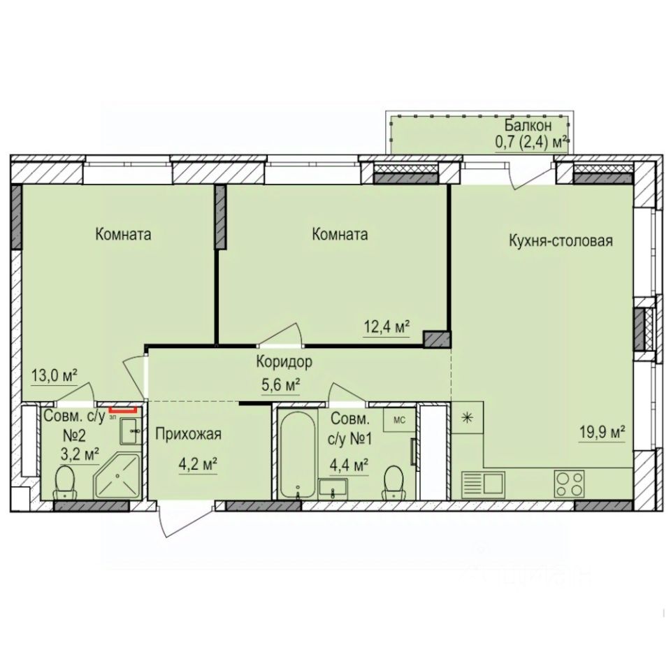 Продаётся 2-комнатная квартира в строящемся доме (Дом 7), срок сдачи: III-кв. 2028, общей площадью 63.4 кв.м., на 6 этаже. Квартира от застройщика КОМОССТРОЙ. Покупка защищена ФЗ 214 с использованием эскроу счетов.
