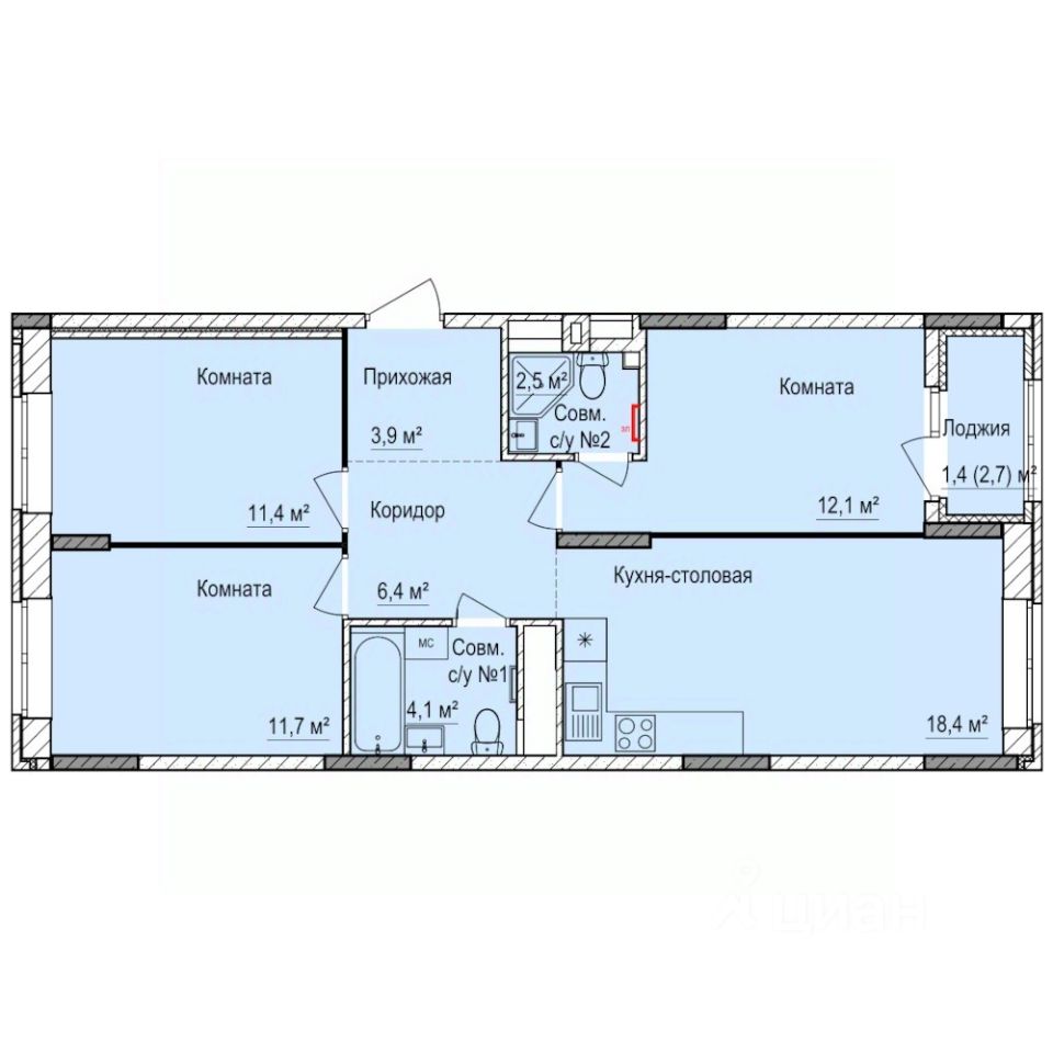 Продаётся 3-комнатная квартира в строящемся доме (Дом 7), срок сдачи: III-кв. 2028, общей площадью 71.9 кв.м., на 8 этаже. Квартира от застройщика КОМОССТРОЙ. Покупка защищена ФЗ 214 с использованием эскроу счетов.