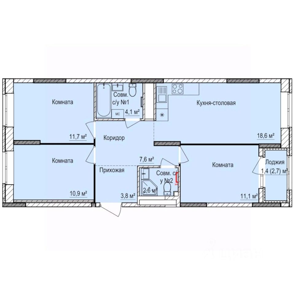 Продаётся 3-комнатная квартира в строящемся доме (Дом 7), срок сдачи: III-кв. 2028, общей площадью 71.8 кв.м., на 15 этаже. Квартира от застройщика КОМОССТРОЙ. Покупка защищена ФЗ 214 с использованием эскроу счетов.
