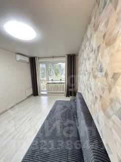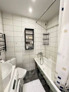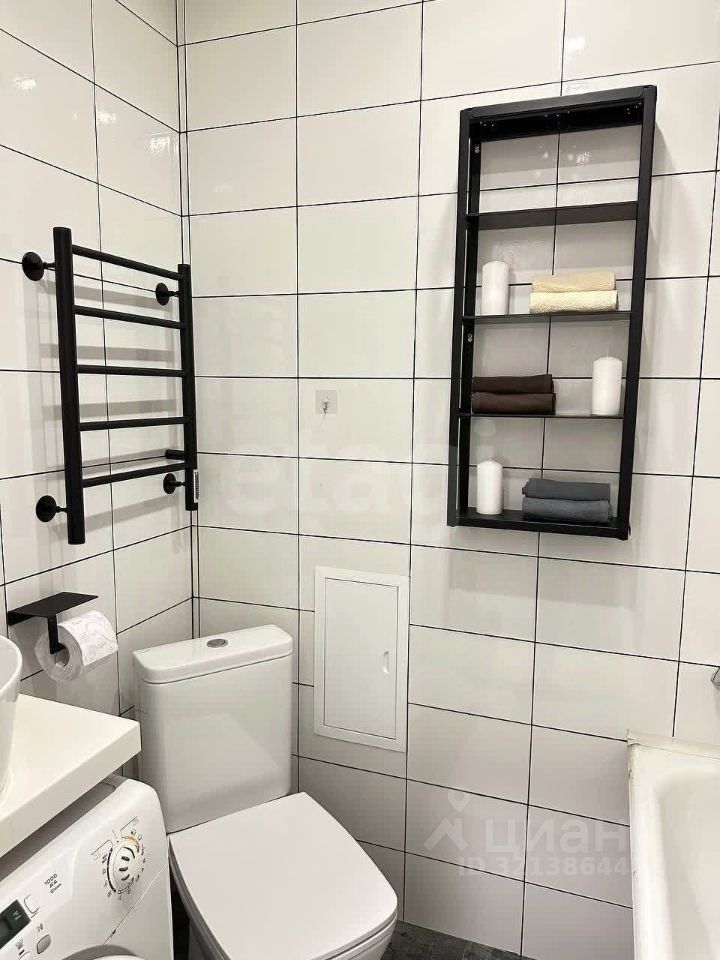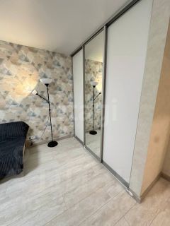 * Мебель: диван, встроенный шкаф, полки в ванной комнате.