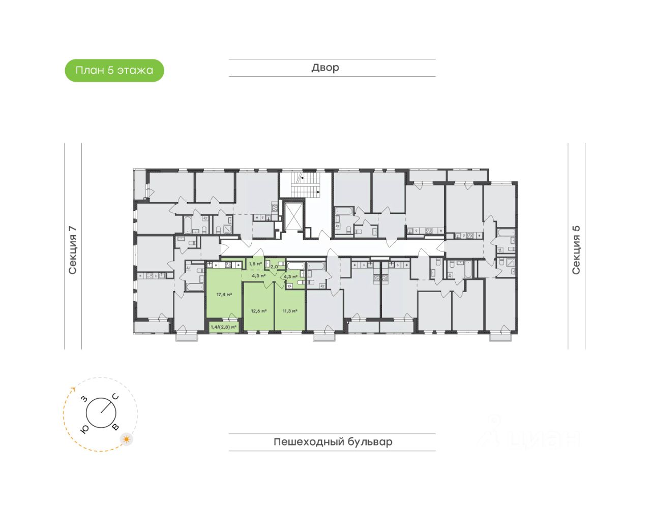Площадь 55,1 кв.м. с двумя спальнями, двумя санузлами, кухней-гостиной и продуманным зонированием.