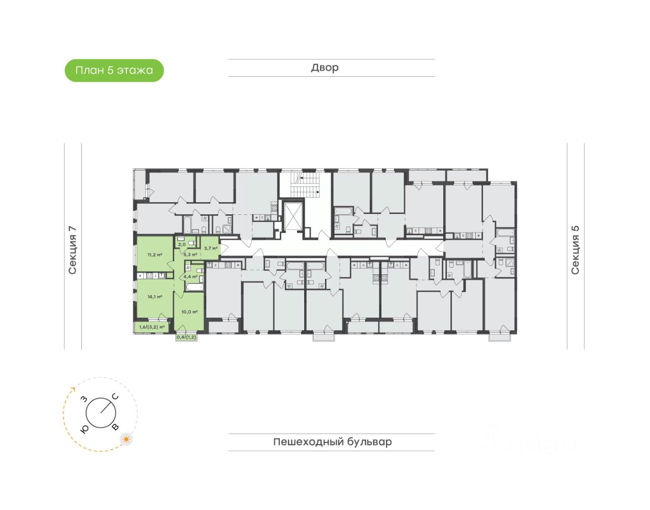 Просторная планировка с окнами на две стороны света — идеальное решение для семьи, ценящей свет и пространство.