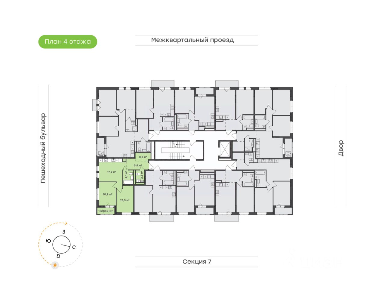 Просторная евро-планировка с окнами на две стороны света — идеальное решение для семьи, ценящей свет и пространство.