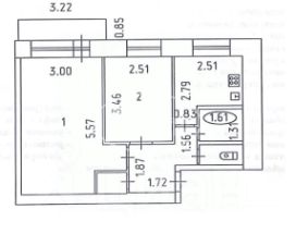 Вашему вниманию 2к квартира 40.9 кв.м.