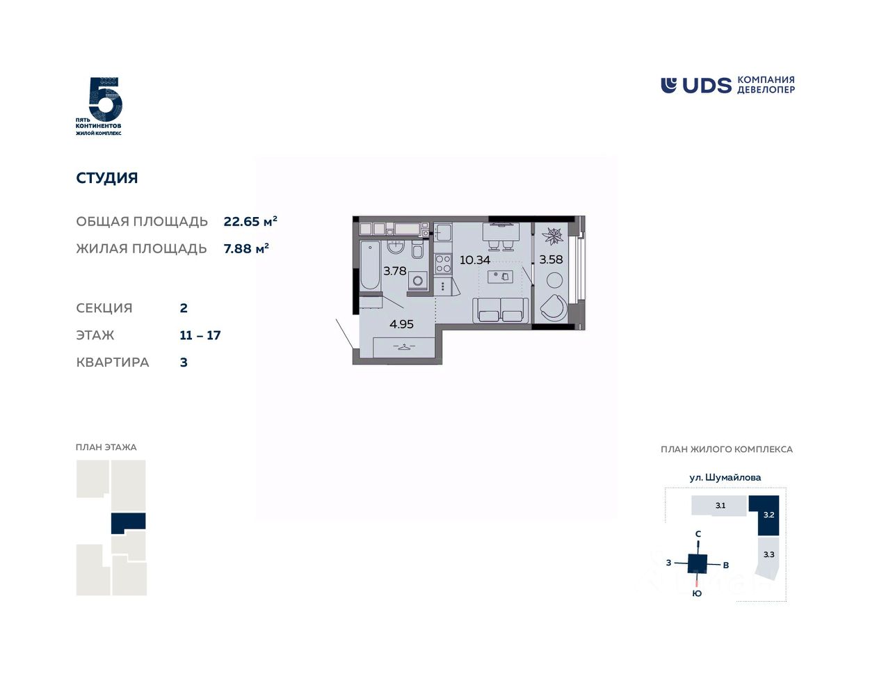 • Всего 5 квартир на этаже,