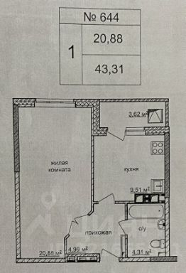 - площадь жилой комнаты - 20,88 кв.м.;