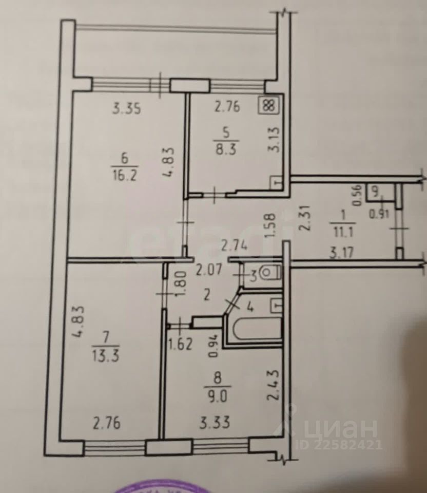 В продаже просторная квартира на восьмом этаже панельного дома улучшенной планировки в центре Первомайского района.