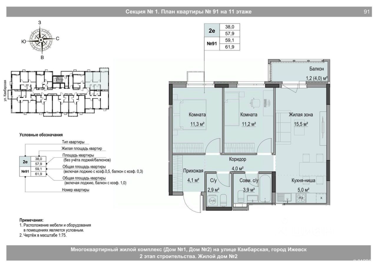Общая площадь59,1 м²