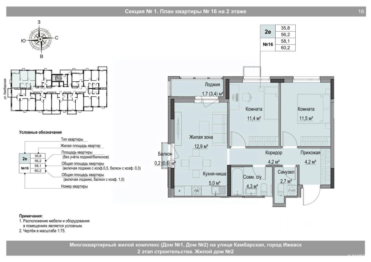 Общая площадь58,1 м²