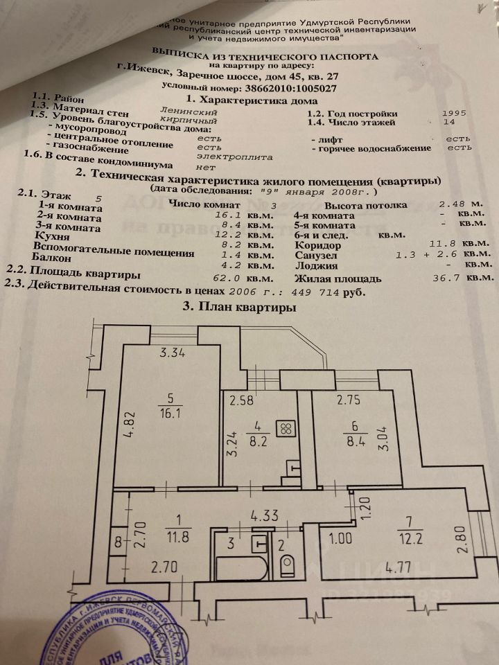 Продается просторная, светлая и уютная 3-комнатная квартира улучшенной (индивидуальной) планировки общей площадью 62 кв м + лоджия. Дом в 14 этажей, КИРПИЧНЫЙ, 1995 года. Квартира расположена на 5 этаже, ориентация двух комнат (16.1 и 8,4 кв м) и кухни (8,2 кв м) на запад, одной комнаты (12,2 кв м) - на север. из окна которой виден пруд. Комнаты не узкие. Площадь просторной прихожей (почти квадратной формы, есть встроенные шкафы)и коридора 11,8 кв м. Ремонт косметический. Во всех комнатах и на кухне натяжные потолки. Окно с дверью на лоджию (из кухни) и окна в двух комнатах пластиковые. Пол на лоджии выложен керамогранитом. Санузел раздельный, в плитке (1,3 и 2,6 кв м) бежевых тонов. Можем оставить мебель и бытовую технику. У дома большая открытая парковка. Рядом остановка автобусных маршрутов 8 и 21. В пешей доступности лицей N14, средняя школа N89, детские сады, детская поликлиника и др. Недалеко ТРЦ Молл Матрица. Два взрослых собственника, без обременений и долгов. Торг.