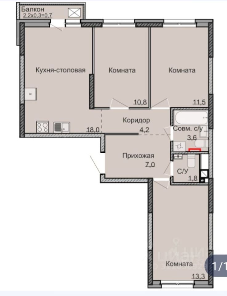 Удобная планировка предусматривает: три изолированные комнаты, просторная кухня-столовая.