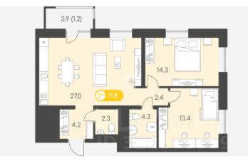 Квартира 2+ с просторной кухней-гостиной площадью 27 кв.м. с ремонтом в ЖК Новый Восход от проверенной строительной компании Острова, известной своим успешным проектом ЖК Новый Город.