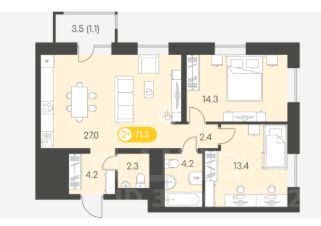 Квартира 2+ с просторной кухней-гостиной площадью 27 кв.м. в предчистовой отделке в ЖК Новый Восход от проверенной строительной компании Острова, известной своим успешным проектом ЖК Новый Город.