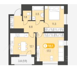 Квартира с предчистовой отделкой площадью 58,5 кв.м. в ЖК Новый Восход от проверенной строительной компании Острова, известной своим успешным проектом ЖК Новый Город.