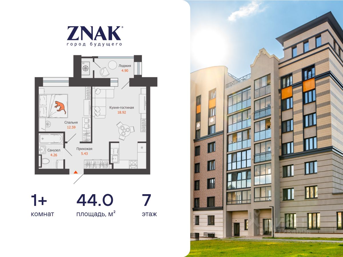Продается 1-комнатная квартира площадью 44.00 кв. м. с предчистовой отделкой. Квартира находится в жилом комплексе комфорт-класса ZNAK, расположенном в районе ул. Берша.
