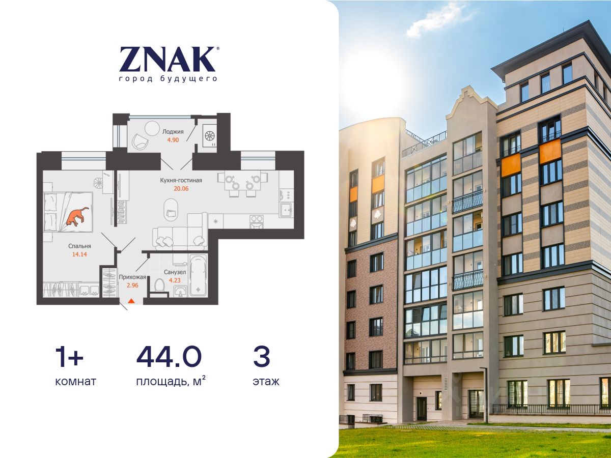 Продается 1-комнатная квартира площадью 44.00 кв. м. с предчистовой отделкой. Квартира находится в жилом комплексе комфорт-класса ZNAK, расположенном в районе ул. Берша.