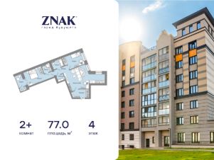 Продается 2-комнатная квартира площадью 77.00 кв. м. с предчистовой отделкой. Квартира находится в жилом комплексе комфорт-класса ZNAK, расположенном в районе ул. Берша.