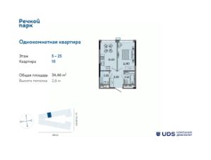 Однокомнатная квартира с просторной кухней. Комната очень светлая - уровень подоконника 60 см от пола, высота окна 1,8 м. Окна выходят на запад. Отдельная хозяйственная комната для стиральной машины и крупногабаритных и сезонных вещей. Высота потолка 2,6м. Застройщику можно заказать один из 5 вариантов чистовой отделки и сразу переехать в готовую для жизни квартиру.