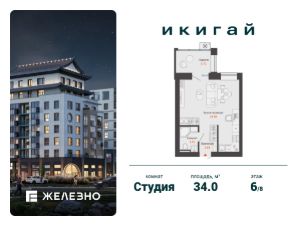 Продается студия площадью 34.00 кв. м с предчистовой отделкой. Квартира находится в жилом комплексе комфорт+ "Икигай" от федерального девелопера "Железно".