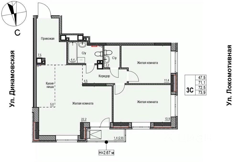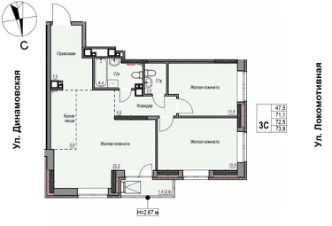 Продаётся 3-комнатная квартира в строящемся доме (Дом 1), срок сдачи: II-кв. 2027, общей площадью 72.5 кв.м., на 6 этаже. ЖК "Локомотив" - это жилой комплекс, состоящий из трех домов, объединенных стилобатом. Удобное расположение, 15 минут до центра.