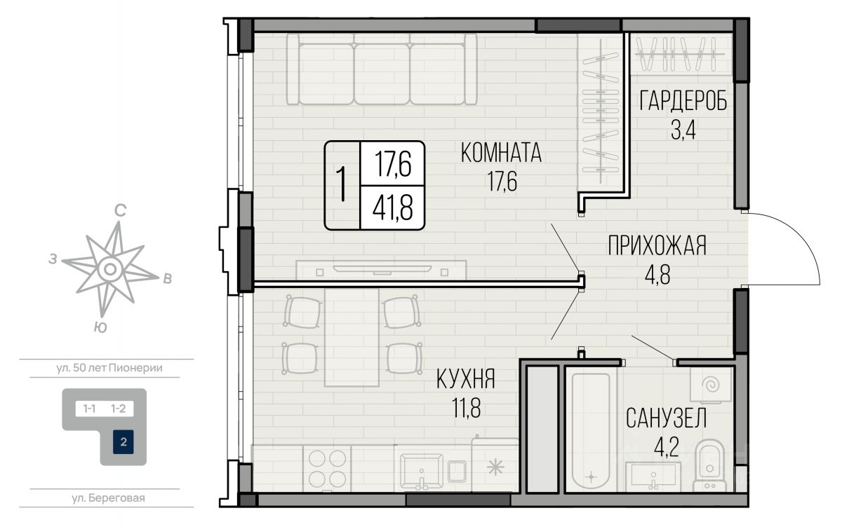 Одним из главных преимуществ является большая встроенная гардеробная, где все ваши вещи будут аккуратно распределены по полочкам. Больше не нужно беспокоиться о беспорядке — здесь всё на своих местах.