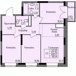Продаётся 3-комнатная квартира в строящемся доме (Дом 2), срок сдачи: II-кв. 2026, общей площадью 68.57 кв.м., на 16 этаже. Новый жилой комплекс "Арден на Селтинской" от застройщика "СЗ Эллипсстрой" расположен по адресу Удмуртская Республика, город Ижевск, ул Луначарского