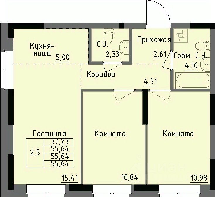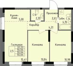Продаётся 2-комнатная квартира в строящемся доме (Дом 2), срок сдачи: II-кв. 2026, общей площадью 55.64 кв.м., на 1 этаже. Новый жилой комплекс "Арден на Селтинской" от застройщика "СЗ Эллипсстрой" расположен по адресу Удмуртская Республика, город Ижевск, ул Луначарского