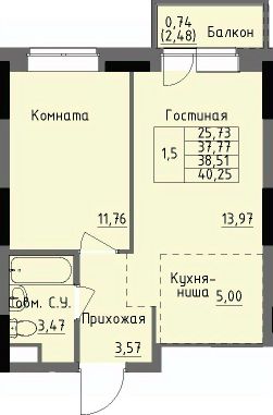 Продаётся 1-комнатная квартира в строящемся доме (Дом 2), срок сдачи: II-кв. 2026, общей площадью 38.51 кв.м., на 3 этаже. Новый жилой комплекс "Арден на Селтинской" от застройщика "СЗ Эллипсстрой" расположен по адресу Удмуртская Республика, город Ижевск, ул Луначарского